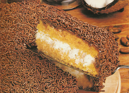 4. Cubra o bolo com o doce de leite e decore com o chocolate granulado.